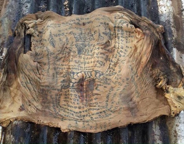 Tatu itu berbentuk tulisan Sanskrit merupakan mentera yang digunakan untuk membuatkan kulit berkenaan diawet dan tidak dimamah tanah.